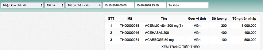 Thống kê nhập hàng cho biết tổng số lần nhập hàng trong ngày, trong tháng, trong nắm hoặc trong một khoảng thời gian bất kỳ